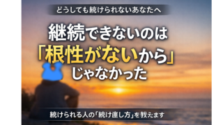 はじめに継続をやめてしまった。途中で投げ出してしまった。そう感じた瞬間、「自分は続けられない人間なんだ」と責めてしまう人は少なくありません。でも実は、継続できなかった原因は、あなたの意志や根性ではないことがほとんどです。多くの場合、続けられ...
